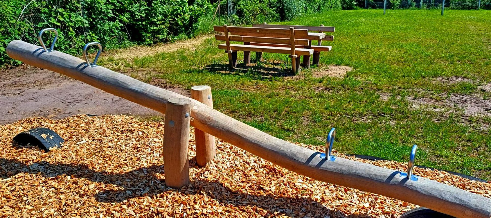Ob beim fröhlichen Hüpfen auf dem Trampolin, beimSchaukeln durch die Luft oder beim wilden Rutschen – hier gibt es für jedes Alter etwas zu erleben. Die Wippe bringt kleine Abenteurer in Schwung, während der große Sandbereich mit Turm und Eimeraufzug zum Bauen, Buddeln und Kreativ sein einlädt.